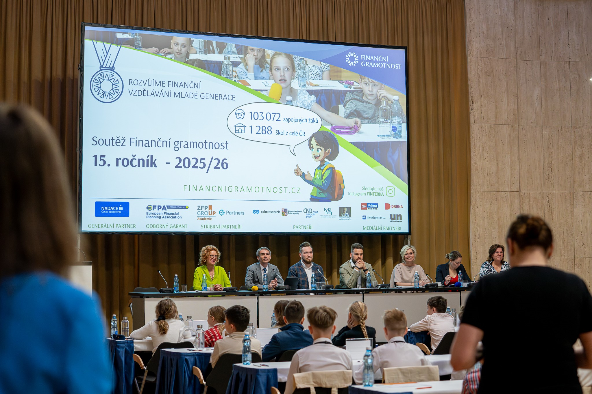 V prostorách Kongresového centra České národní banky se v pátek konalo celostátní finále již 15. ročníku soutěže Finanční gramotnost. Akce je určena pro žáky a žákyně základních škol a smyslem iniciativy je upozornit na nutnost výuky a osvojování si zdravých finančních návyků.