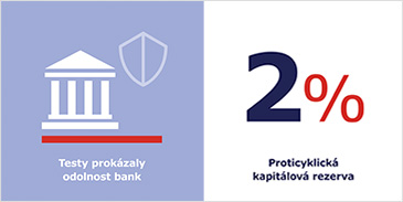 - Banky zůstávají odolné vůči případným nepříznivým šokům. Pro zachování této odolnosti i v případě ochlazení ekonomiky by měly udržovat kapitálové rezervy i současné dobrovolně držené kapitálové přebytky a provádět přiměřenou dividendovou politiku.