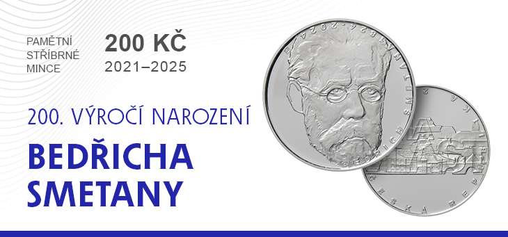 Bedřicha Smetanu nově připomíná pamětní stříbrná mince. Ke 200. výročí narozenin světově proslulého českého hudebního skladatele ji vydala Česká národní banka (ČNB). Jde o druhou letošní pamětní minci v dvousetkorunové nominální hodnotě.