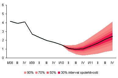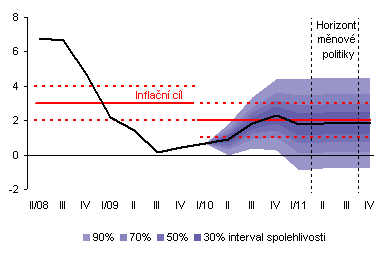 Prognóza inflace pro období duben 2010 - červen 2010 po měsících