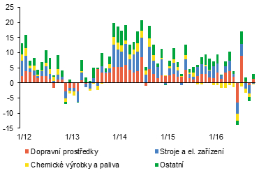 Zpomalení dynamiky vývozu bylo taženo zejména vývojem vývozu v automobilovém průmyslu