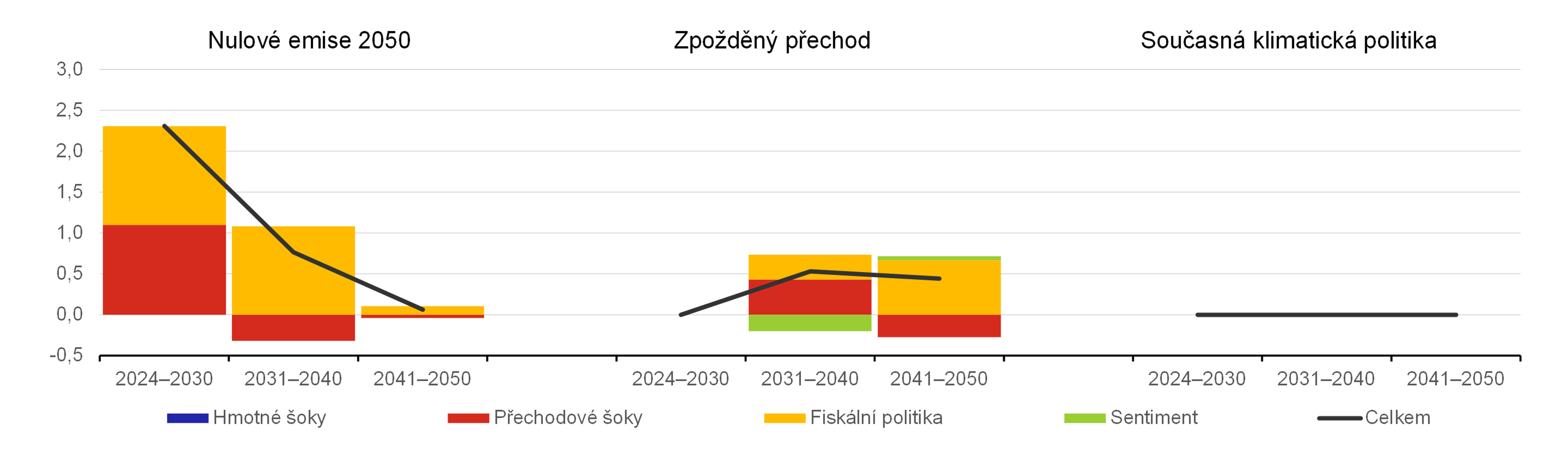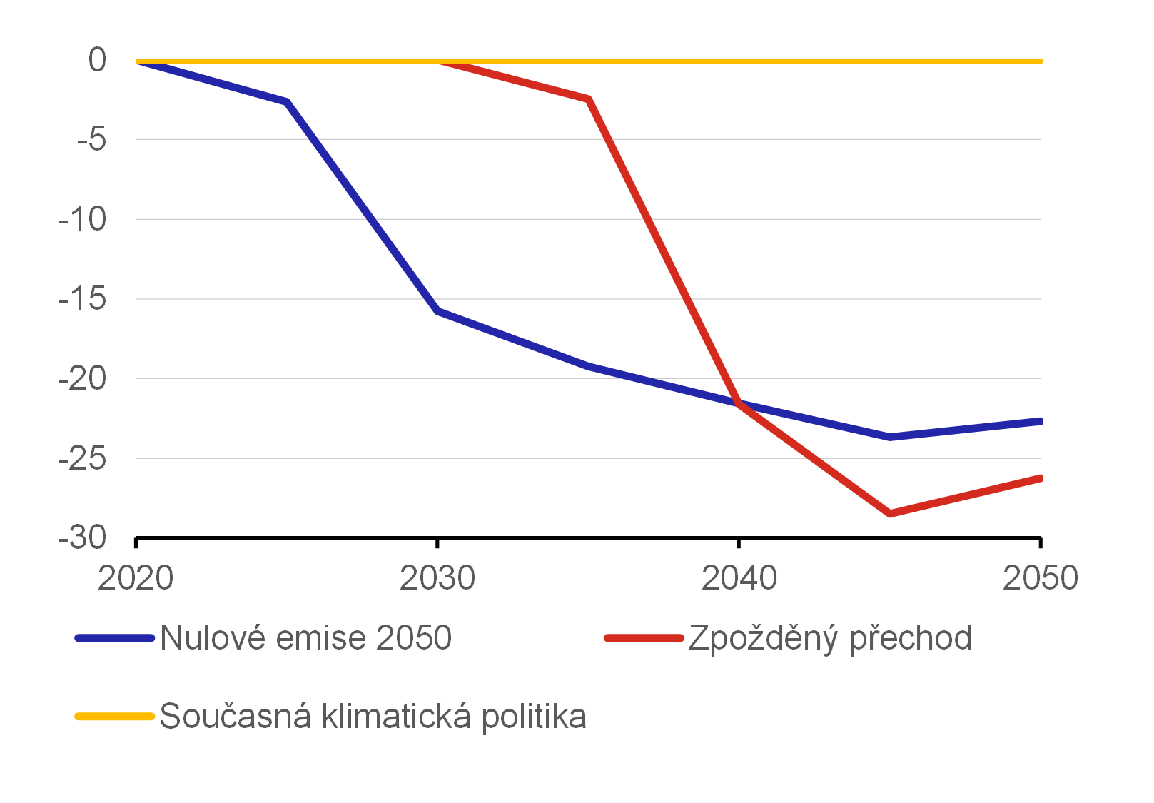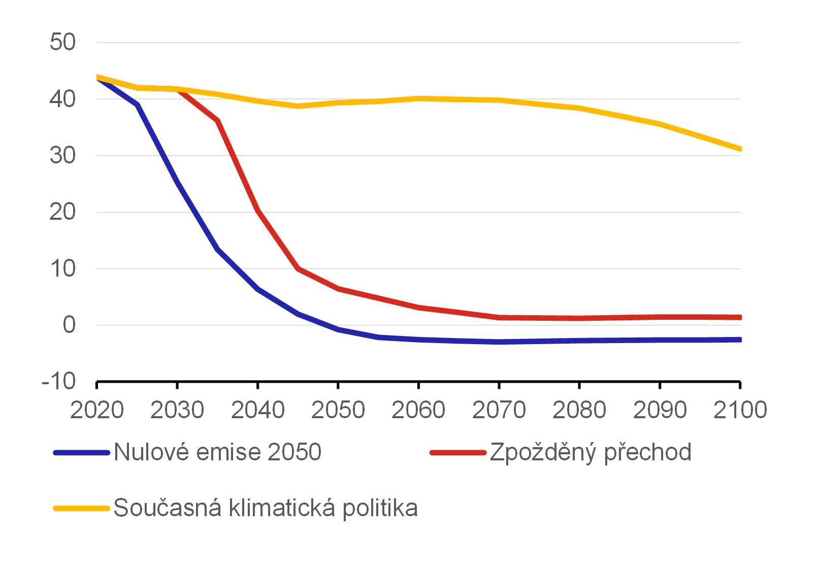 Zdroj: Vlastní výpočty prostřednictvím modelu NiGEM na základě výstupů z klimatického modelu REMIND-MAgPIE.