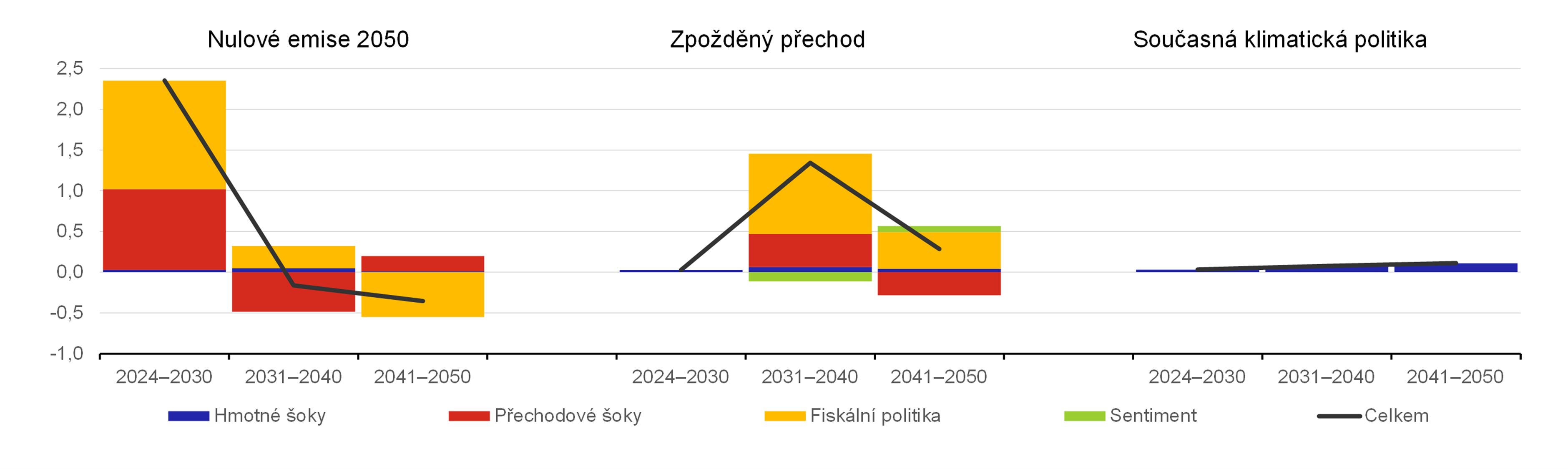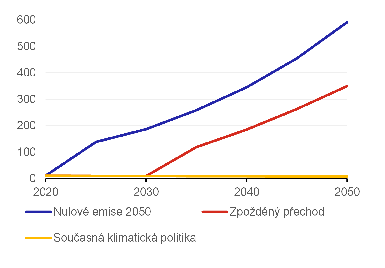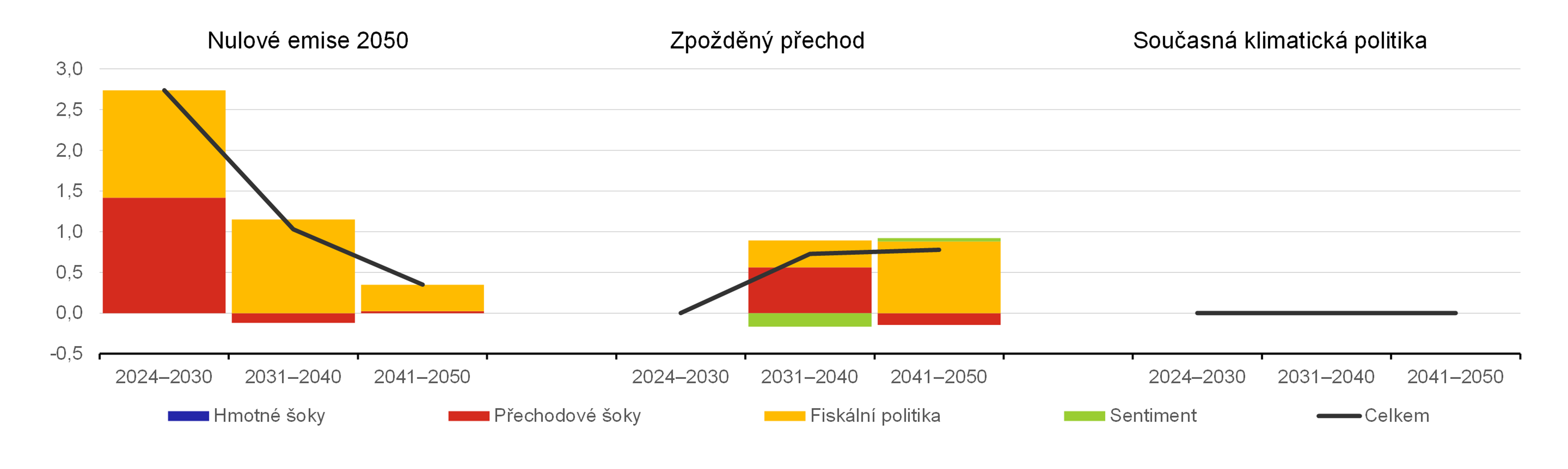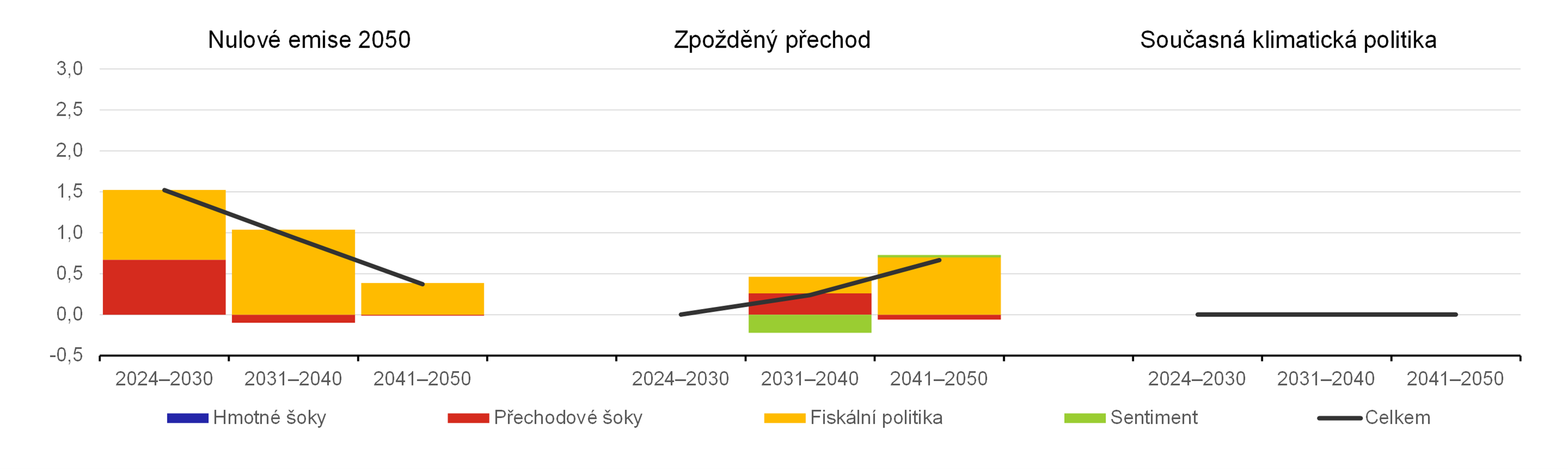 Zdroj: Vlastní výpočty prostřednictvím modelu NiGEM na základě výstupů z klimatického modelu REMIND-MAgPIE.