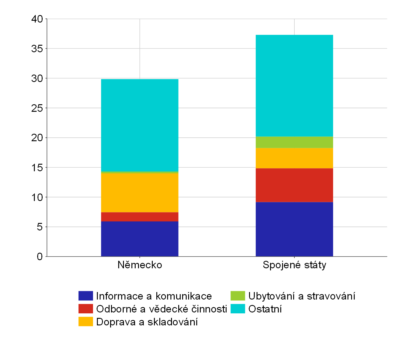Pozn.: Zahrnuje pouze podnikatelský sektor (bez veřejné správy a obrany), bez daňových rájů (Irsko, Švýcarsko, Singapur, Holandsko, Lucembursko, Belgie).