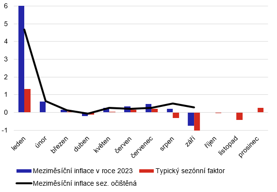 Pozn.: Očekávaný vliv meziměsíčních změn v říjnu až prosinci tohoto roku je blízký nule a v grafu by nebyl viditelný, proto jej v legendě neuvádíme.