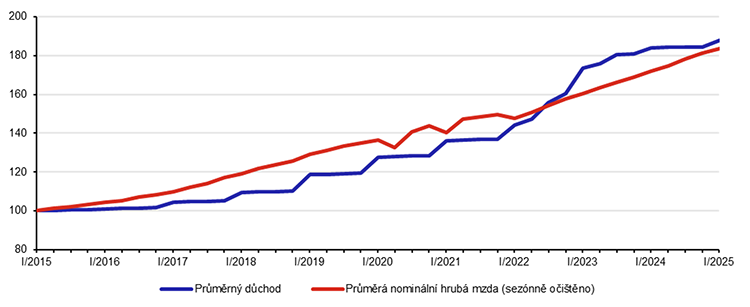 Zdroj dat: Česká správa sociálního zabezpečení, Česká národní banka