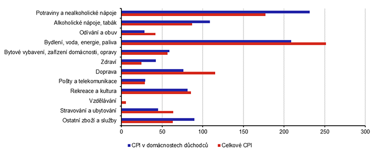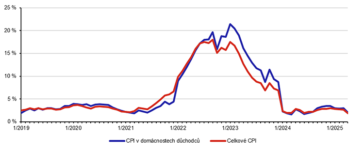 Druhá změna se týkala zohlednění inflace. Původní valorizační vzorec počítal vždy s vyšším ze dvou posuzovaných ukazatelů inflace: celkového CPI a CPI pro domácnosti důchodců (Graf 11 a 12). Nově se valorizace řídí jen tzv. důchodcovskou inflací. Naposledy se celkové CPI místo důchodcovského CPI použilo pro mimořádnou valorizaci v červnu 2022, nicméně v posledních měsících se indexy vyvíjely přibližně stejně.