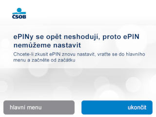 - ePIN nesmí obsahovat 4 po sobě jdoucí čísla (např. 1234) a také 4 stejná čísla (např. 9999).