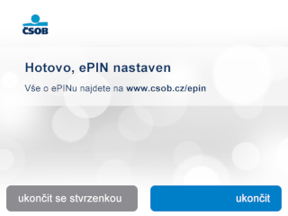 Pokud proběhlo nastavení ePIN zdárně, zobrazí se na obrazovce potvrzení:
