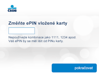 Pro změnu ePIN platí stejné pravidlo jako pro získání ePIN – lze změnit pouze na bankomatu ČSOB v ČR.