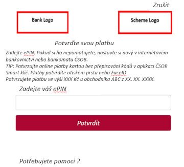 Po zadání ePIN je držitel vyzván k potvrzení:
