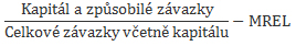 „Kapitál“ je součtem kapitálu tier 1 a kapitálu tier 2 podle definice v čl. 4 odst. 1 bodě 118 CRR. „Způsobilé závazky“ jsou součtem závazků podle §122 ZOPRK. „Celkové závazky“ jsou vymezeny v oddíle 3 směrnice Rady 86/635/ES nebo v souladu s IFRS standardy uvedenými v nařízení EP 1606/2002. Derivátové závazky se zahrnují do celkových závazků po zohlednění nettingových práv protistrany. „MREL“ je požadavek stanovený v souladu s §131 až §134 ZOPRK. |