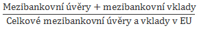 „Mezibankovní úvěry“ jsou vymezeny jako součet účetní hodnoty úvěrů a jiných pohledávek za úvěrovými institucemi a jinými finančními podniky, jak je stanoveno v šablonách číslo 4.1, 4.2, 4.3 a 4.4 přílohy III prováděcího nařízení Komise (EU) 680/2014. „Mezibankovní vklady“ jsou vymezeny jako účetní hodnota vkladů úvěrových institucí a jiných finančních podniků, jak je stanoveno pro účely šablony číslo 8.1 přílohy III prováděcího nařízení Komise (EU) 680/2014. „Celkové mezibankovní úvěry a vklady v EU“ jsou součtem souhrnných mezibankovních úvěrů a vkladů v držbě institucí v každém členském státě. |