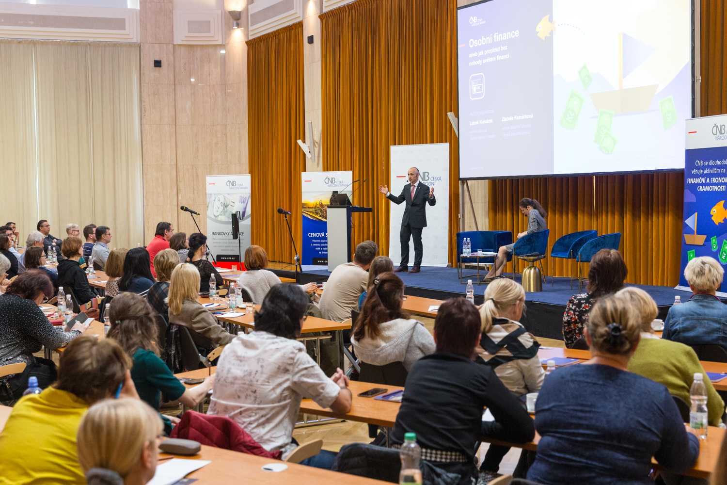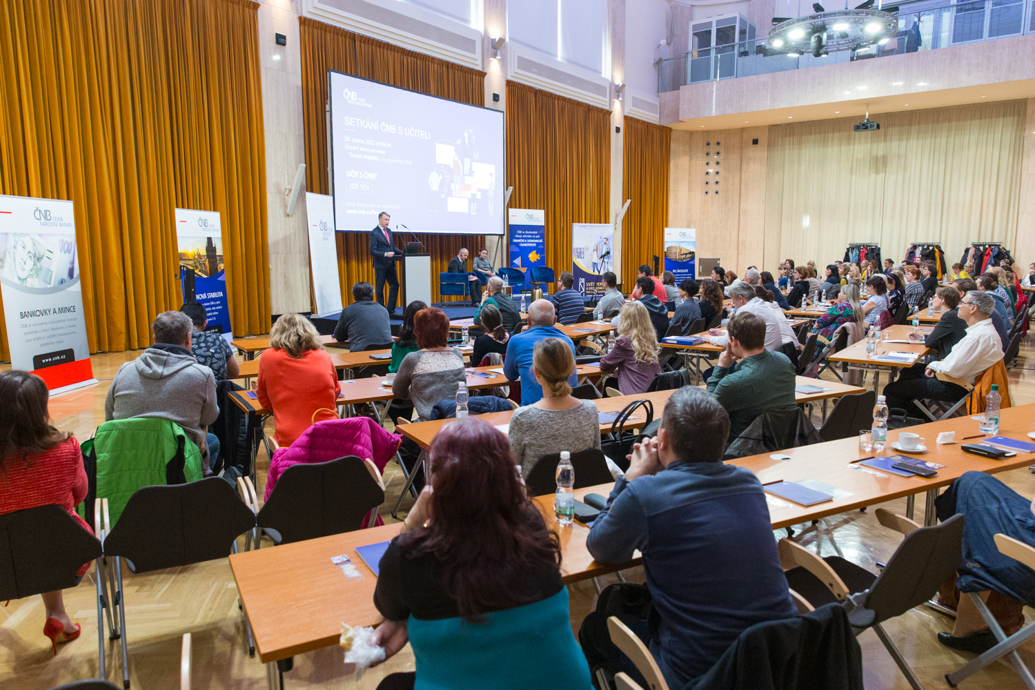 V úterý 26. dubna 2022 se zástupci ČNB setkali s učiteli přímo v hlavní budově České národní banky. Pedagogům druhého stupně základních škol a nižších ročníků středních škol představili Zlata a Luboš Komárkovi z ČNB výukové materiály na téma Osobní finance a Proč vznikají krize?. Setkání s učiteli ČNB pořádala poprvé.