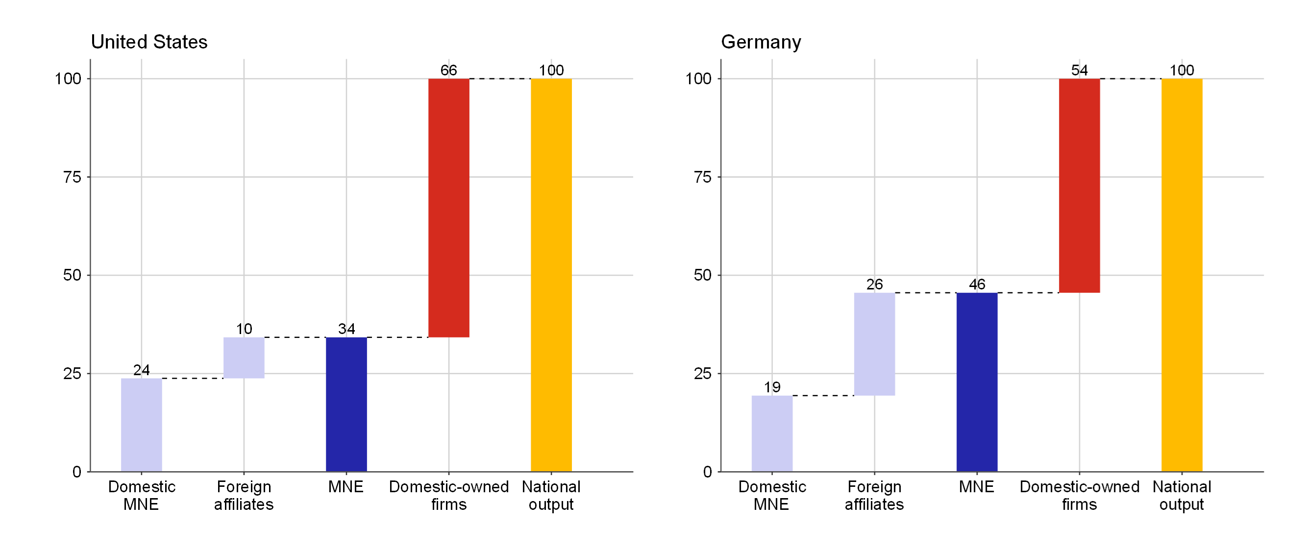[9] A business that carries out economic activities in more than one country, either directly through its foreign branches or subsidiaries, or indirectly through contractual relationships and partnerships in global value chains, is defined as an MNE.