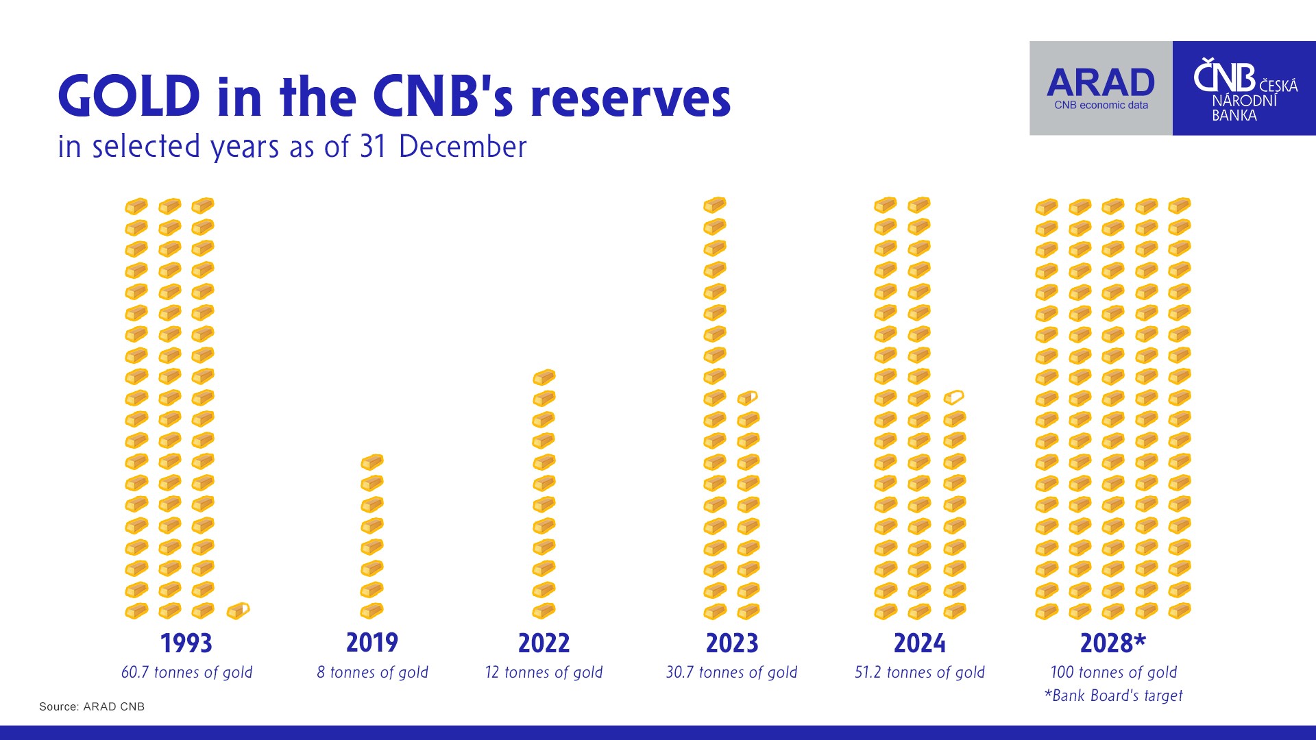 The CNB aims to increase the amount of gold in its international reserves to 100 tonnes by 2028 – the most in its history.