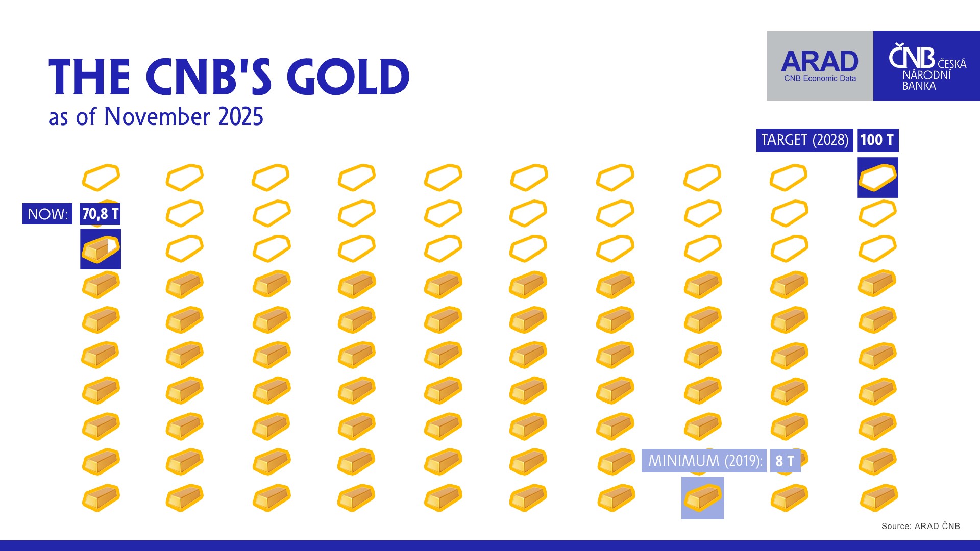 The CNB has been buying gold more actively since 2022, gradually rebuilding the nation’s gold reserves. It held around 12 tonnes of gold at the end of 2022, 30.7 tonnes a year later and 51.2 tonnes at the end of 2024. In November 2025, it held 70.8 tonnes of this precious metal.