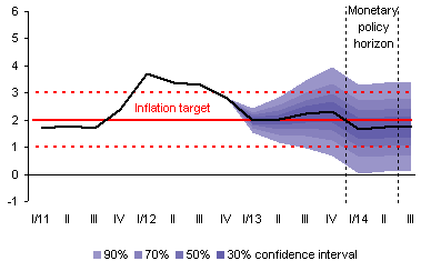 The monthly forecast of monetary-policy relevant inflation in the period January 2013 - March 2013