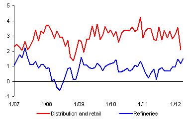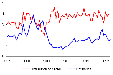 Refineries' gross margins increased at the start of 2012, while retail margins have long been comparatively stable