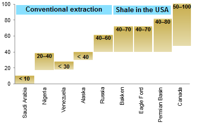 Estimates of the breakeven price of oil differ widely depending on extraction technology and specific geological conditions