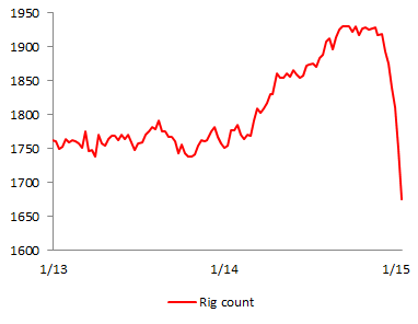 The rig count in the USA started plummeting in December 2014
