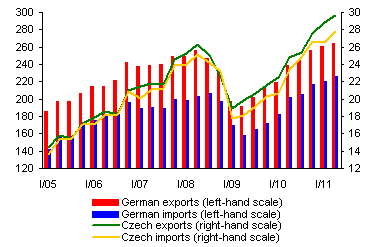 The foreign trade of the Czech Republic and Germany is highly interdependent