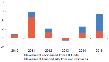 Annual growth in investment by non-financial corporations was largely driven by investment co-financed from European funds