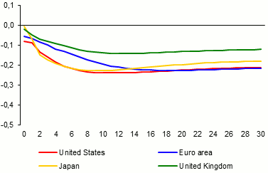 Chart 1 (BOX) Impact of a 1% negative shock to Chinese GDP on advanced economies