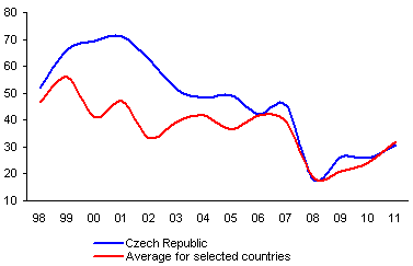 The onset of the financial crisis accelerated the outflow of dividends from the Czech Republic and from the other monitored countries